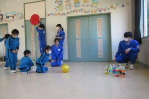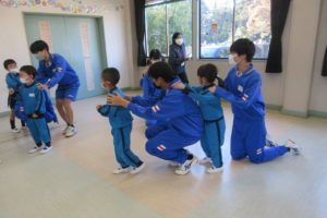 大きなお兄さん、お姉さんに一緒に遊んでもらい