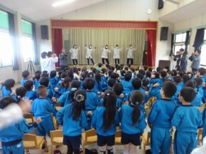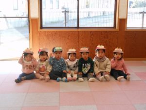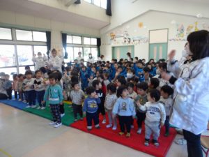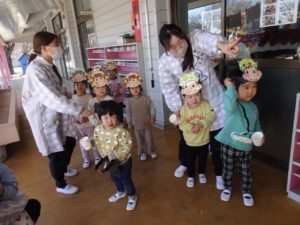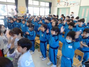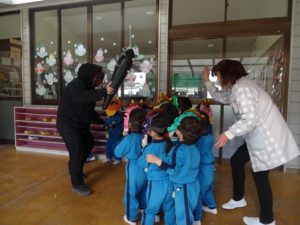 みんなで豆まきのお歌を歌い、園長先生のお話を聞きました。