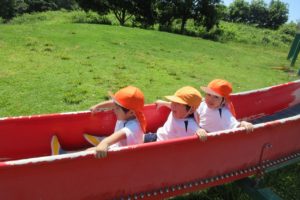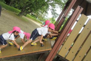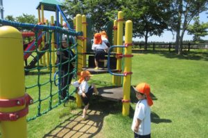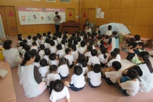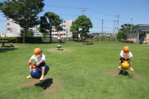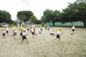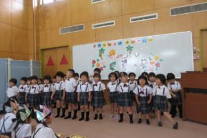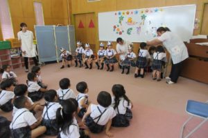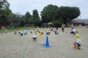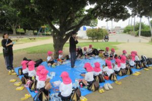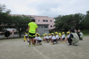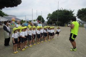 ちきゅう組さんとの掛け合いで、みんなの元気な声が園庭に響きます ☆