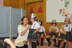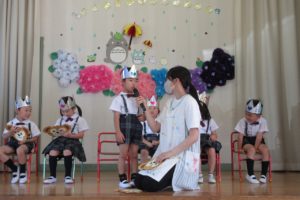 うさぎ組、ひよこ組のみんなが「しまじろう音頭」を、