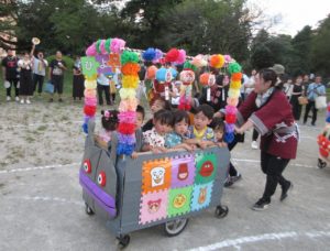 ひよこ組さんの「アンパンマン号とダダンダン号」の山車、