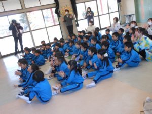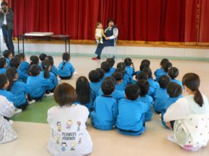 みんなで豆まきのお歌を歌い、園長先生のお話を聞きました。