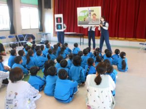 今日は、ちきゅう組さんとそら組さんが交通安全教室に参加しました !