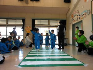 子ども達の発表を見ていただいたり、一緒に昔あそびをしたり、